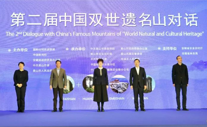 第二屆中國雙世遺名山對話由國際山地旅游聯盟、中國新聞社、中共黃山市委、黃山市人民政府主辦,中新社國際傳播集團安徽分公司等單位承辦。